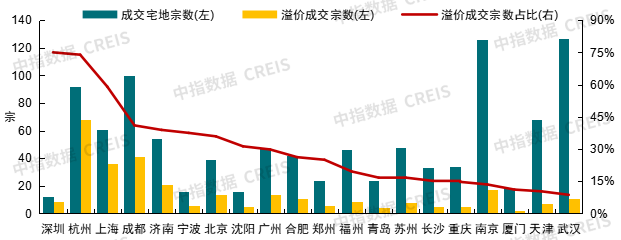 2025年一季度,北京、成都两度刷新地价纪录,杭州三次刷新单价纪录,其中北京海淀树村地块成交楼面价102347元/㎡,刷新北京地价单价最高纪录(之前最高纪录为1月2日建发竞得的海淀朱房地块,成交楼面价95407元/㎡);成都金融城三期H10地块经213轮竞价被建发以高溢价率106%获取,成交楼面价达41200元/㎡;杭州西湖蒋村文新单元XH030203-01(3)地块成交楼面价88029元/㎡,溢价率115.39%。三季度,上海、深圳、苏州宅地单价纪录相继刷新,其中上海徐汇地块成交楼面价达20.03万元/m²,刷新全国宅地地价最高纪录,但该地块位于核心地段,体量较小,规划建面仅6117平方米;深圳前海桂湾T201-0232地块吸引12家房企参拍,成交楼面价84180元/㎡,溢价率达86.1%,刷新深圳宅地地价最高纪录。